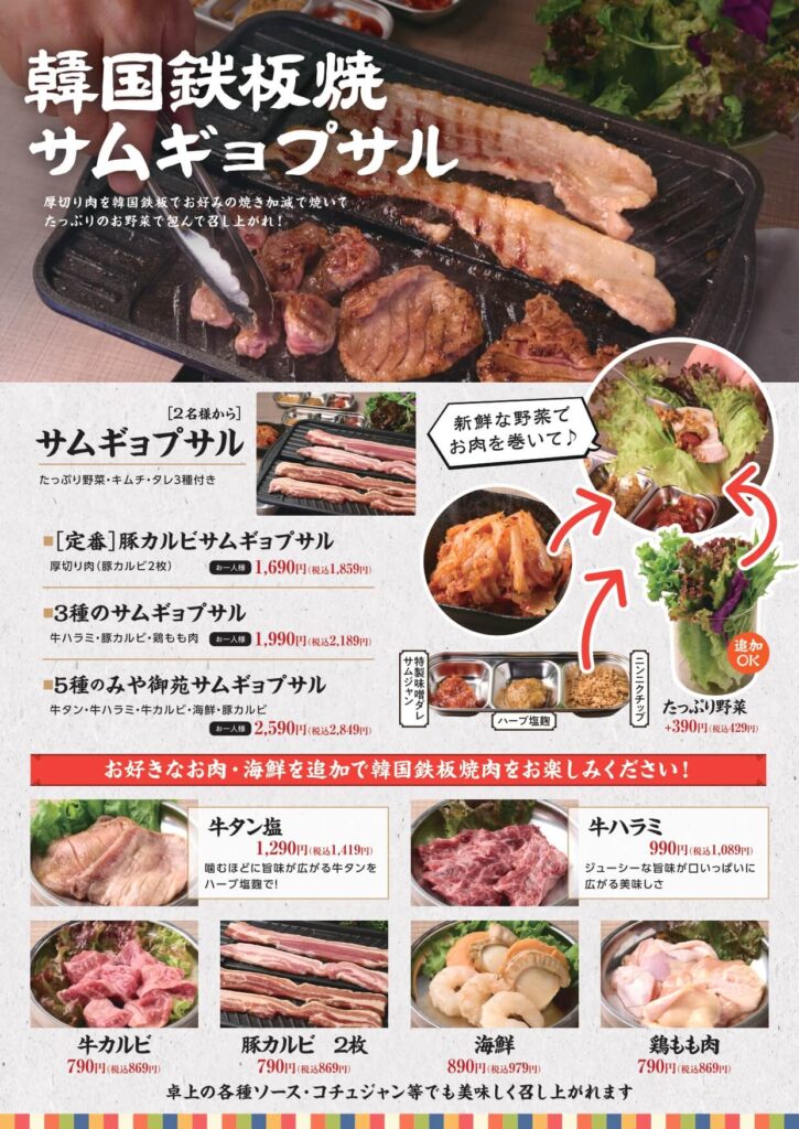 | 店舗名 | 鉄板サムギョプサル&韓国料理 みや御苑 鶴田本店 |